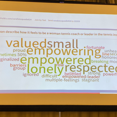 One of the most revealing aspects of the workshop was when the women and men in the room were asked independently to describe how it feels to be a coach or leader in tennis.